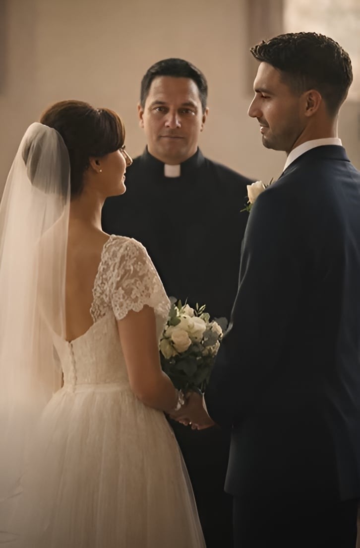 Als ich zu Michael trat und seine Hand nahm, verschwand alles um uns herum. Es gab nur noch uns beide. Der Priester begann zu sprechen, die Zeremonie nahm ihren Lauf, und ich hörte fast auf, an die Gäste zu denken… als plötzlich ein Stuhl laut knarrte und die Stille durchschnitt.